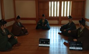 門の内部は意外と広く何か話し合いをしているような人形が5体