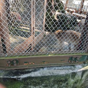 本丸売店の右隣に円形の檻があり、何頭かの日本猿が飼育されています。