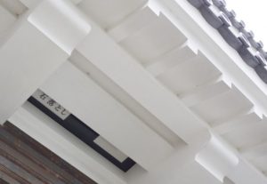 何気なく門の上を見上げたら、石落としの穴があいていました!