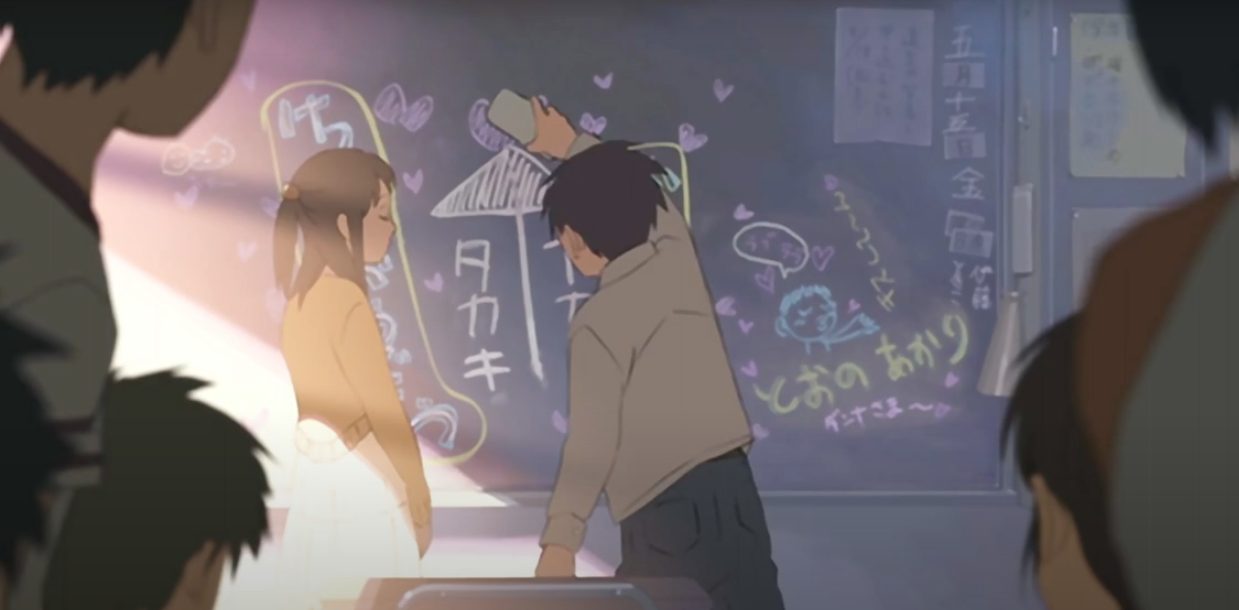 タイトルの“秒速5センチメートル”とは、桜の花びらが落ちる速度。